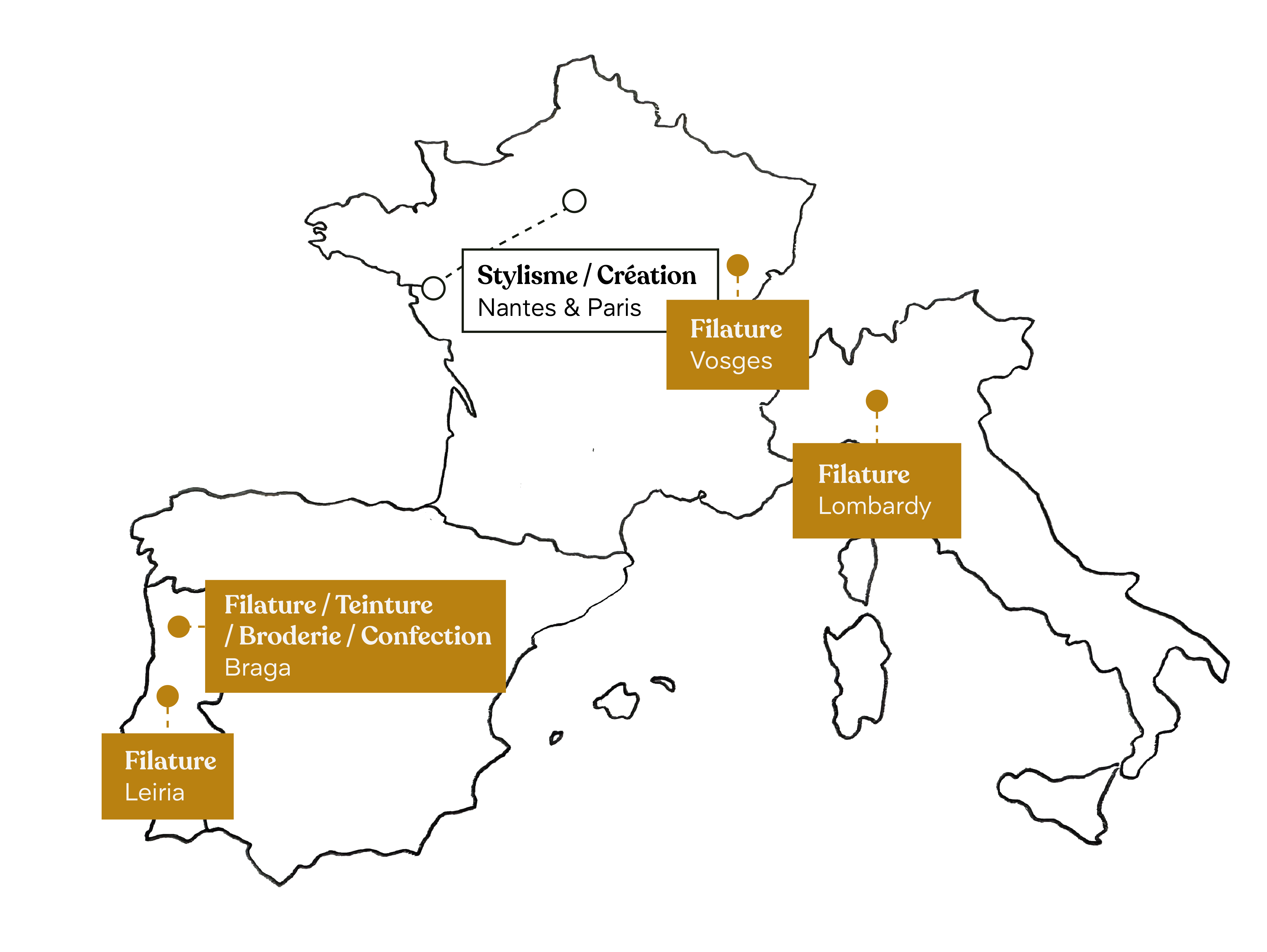 Il est toujours intéressant et valorisant de parler des confections, mais les filatures ne doivent pas être oubliées. Pour ces dernières nous travaillons uniquement avec des partenaires français ou en voisinage proche (Portugal, Espagne, Italie). Toutes sont d’ailleurs souvent des entreprises avec une histoire forte, maîtrisant en interne l’intégralité de leur chaîne de production.